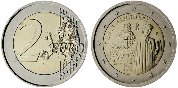 2 euro 2015750. obljetnica rođenja Dante Alighieri